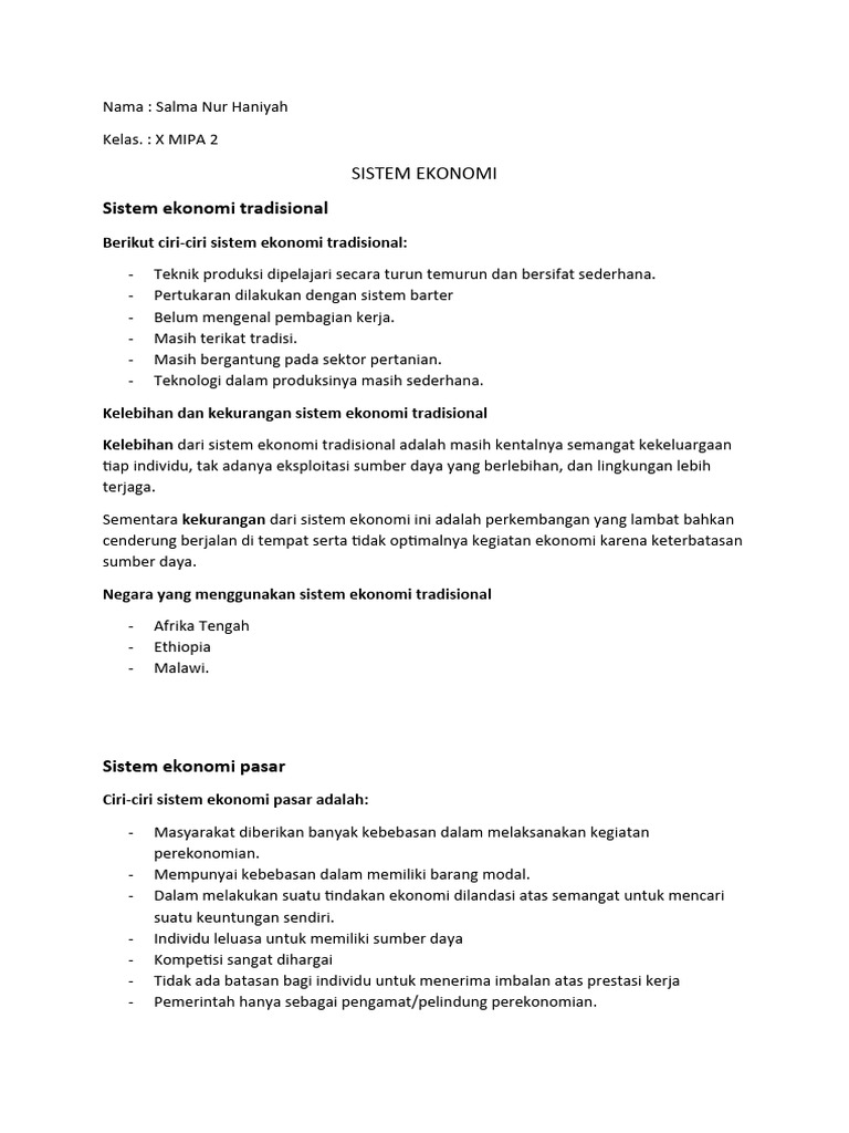 Kelebihan dan kekurangan sistem ekonomi tradisional