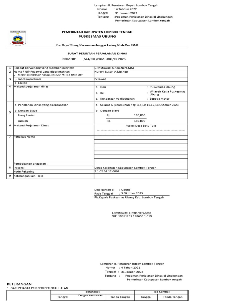 Kepala Puskesmas Ubung Kab. Lombok Tengah