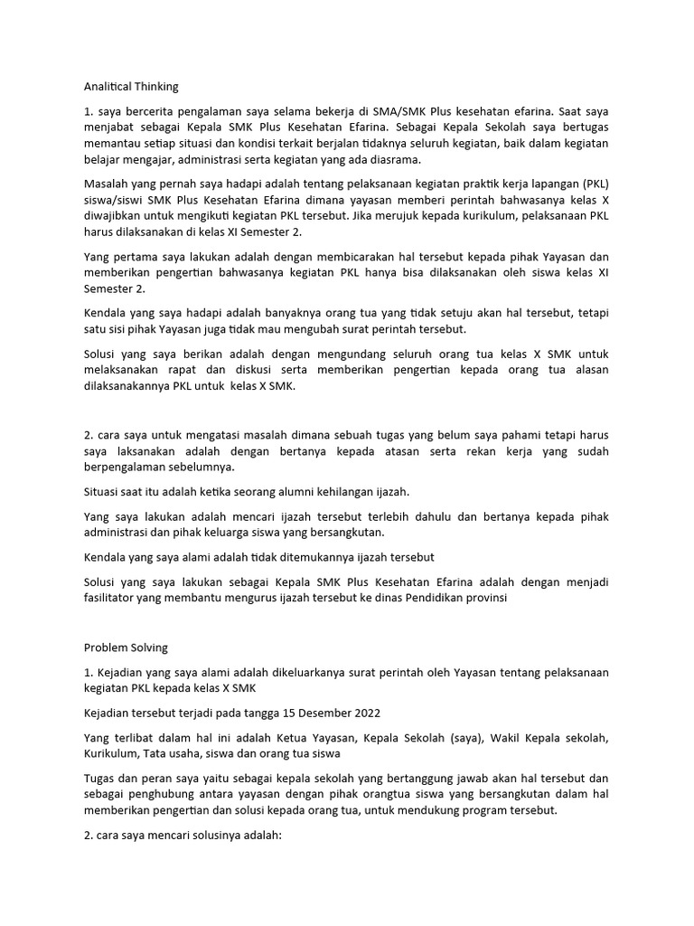 1. Saat saya menjabat sebagai Kepala SMK Plus Kesehatan Efarina, saya terlibat dalam penyusunan