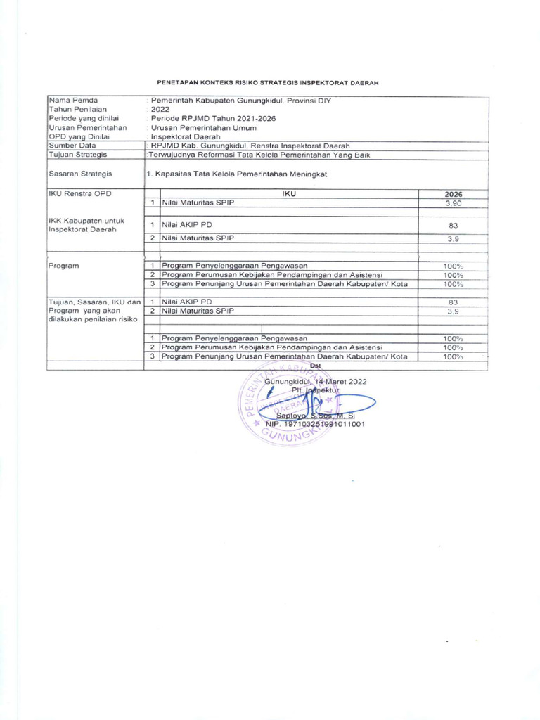 Risiko Strategis Inspektorat Gunungkidul