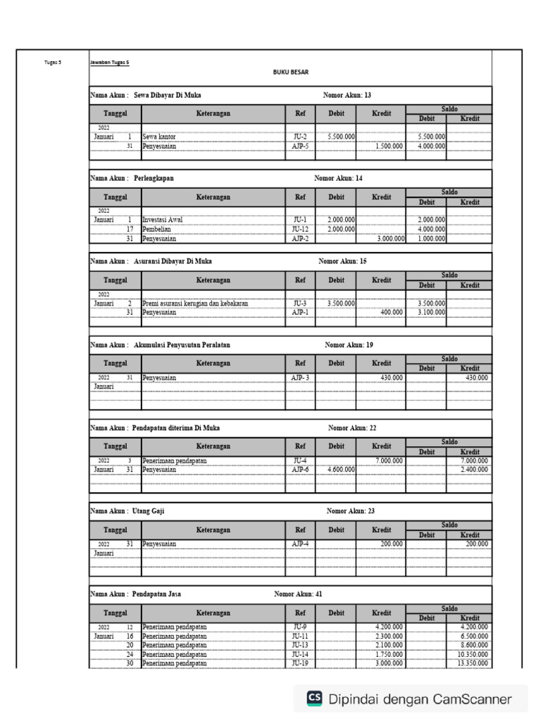 Nama Akun : Pendapatan diterima Di Muka Nomor Akun: 22