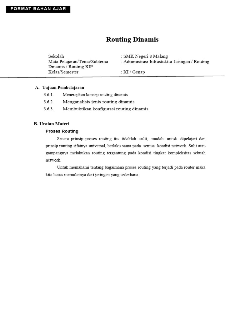 Mata Pelajaran/Tema/Subtema : Administrasi Infrastuktur Jaringan / Routing