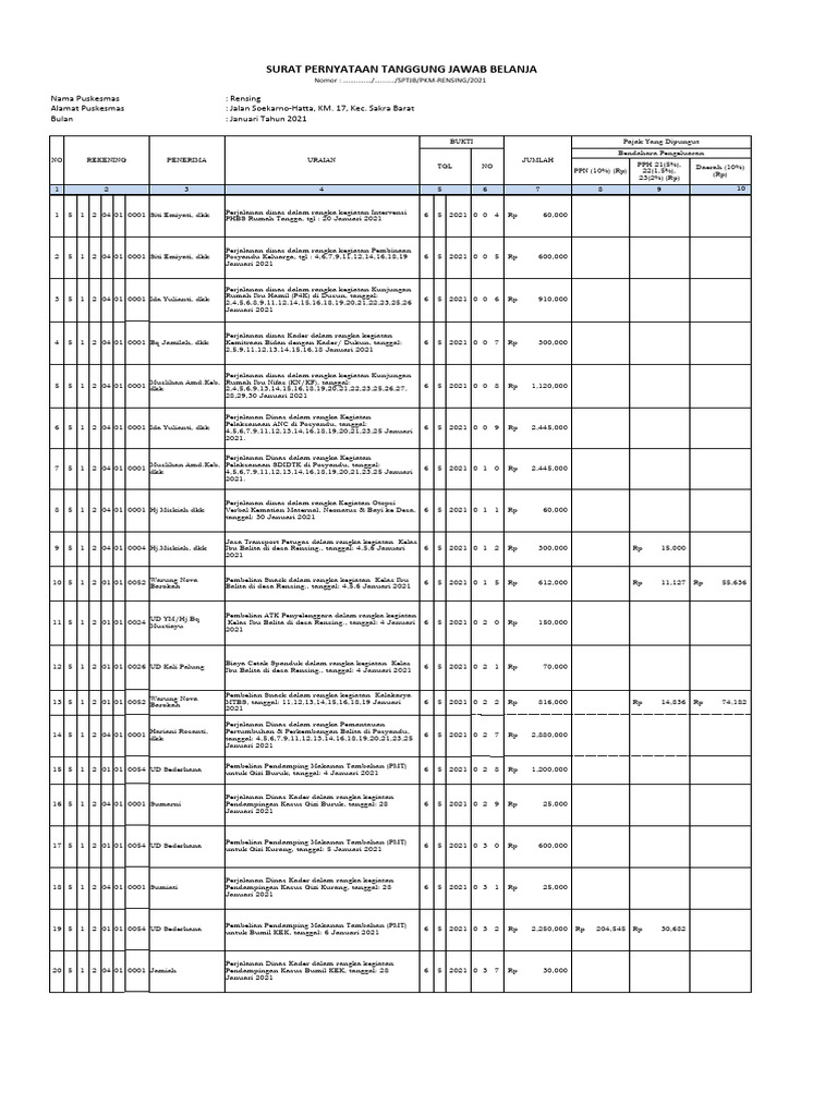 SURAT PERNYATAAN TANGGUNG JAWAB BELANJA