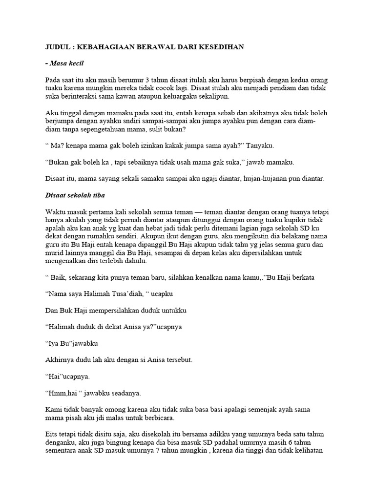 kehilangan keluarga yang utuh. Aku iri dengan temanku yg selalu bersama keluarganya tetapi