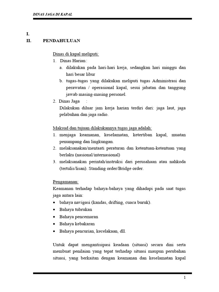 1. Pengaturan Tugas Jaga di Kapal oleh Nahkoda meliputi: