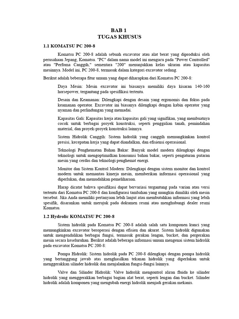 Sumber: KATALOG KOMATSU PC 200-8