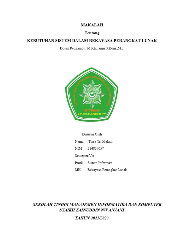 KEBUTUHAN SISTEM DALAM REKAYASA PERANGKAT LUNAK