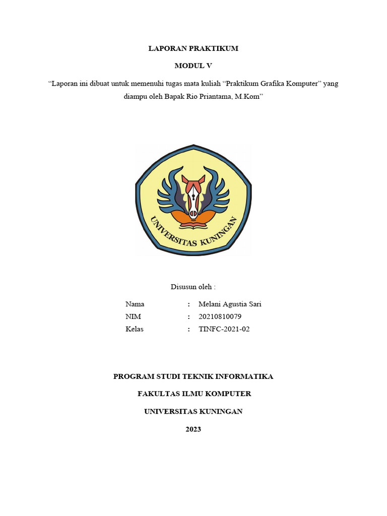 “Laporan ini dibuat untuk memenuhi tugas mata kuliah “Praktikum Grafika Komputer” yang