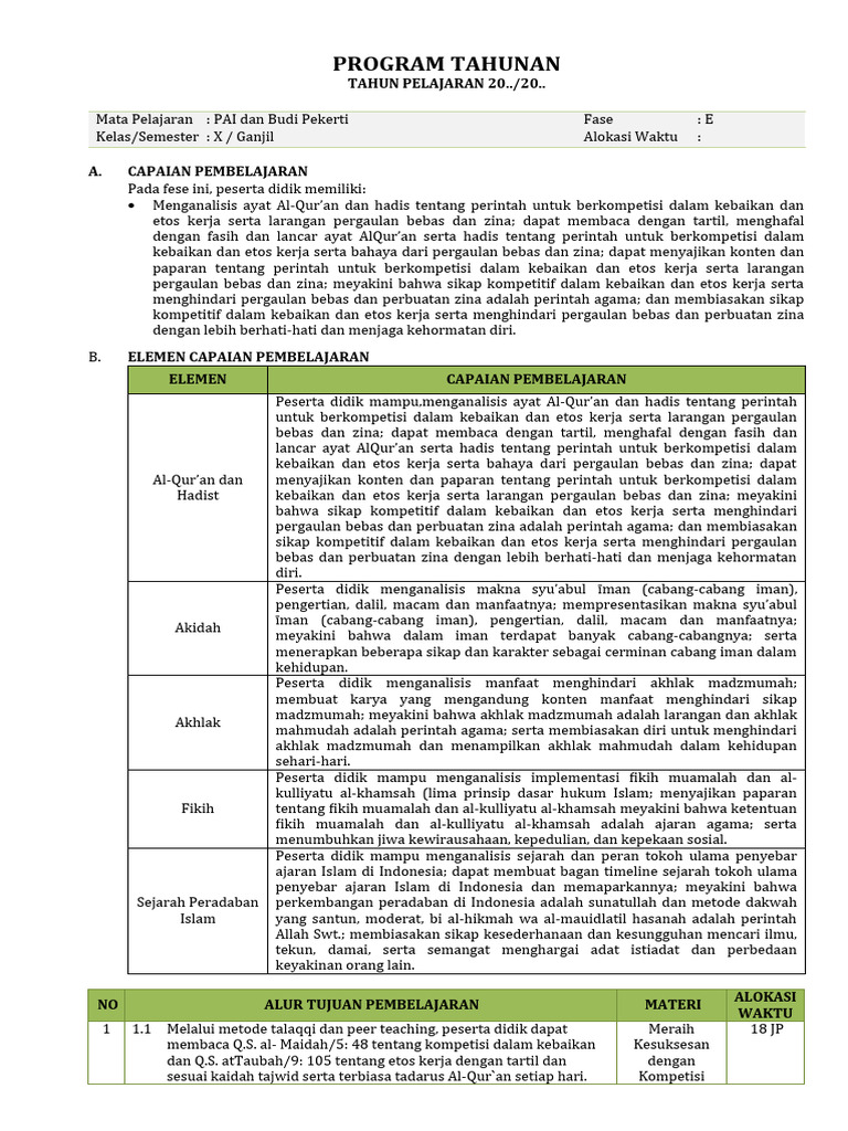 Mata Pelajaran : PAI dan Budi Pekerti Fase :E