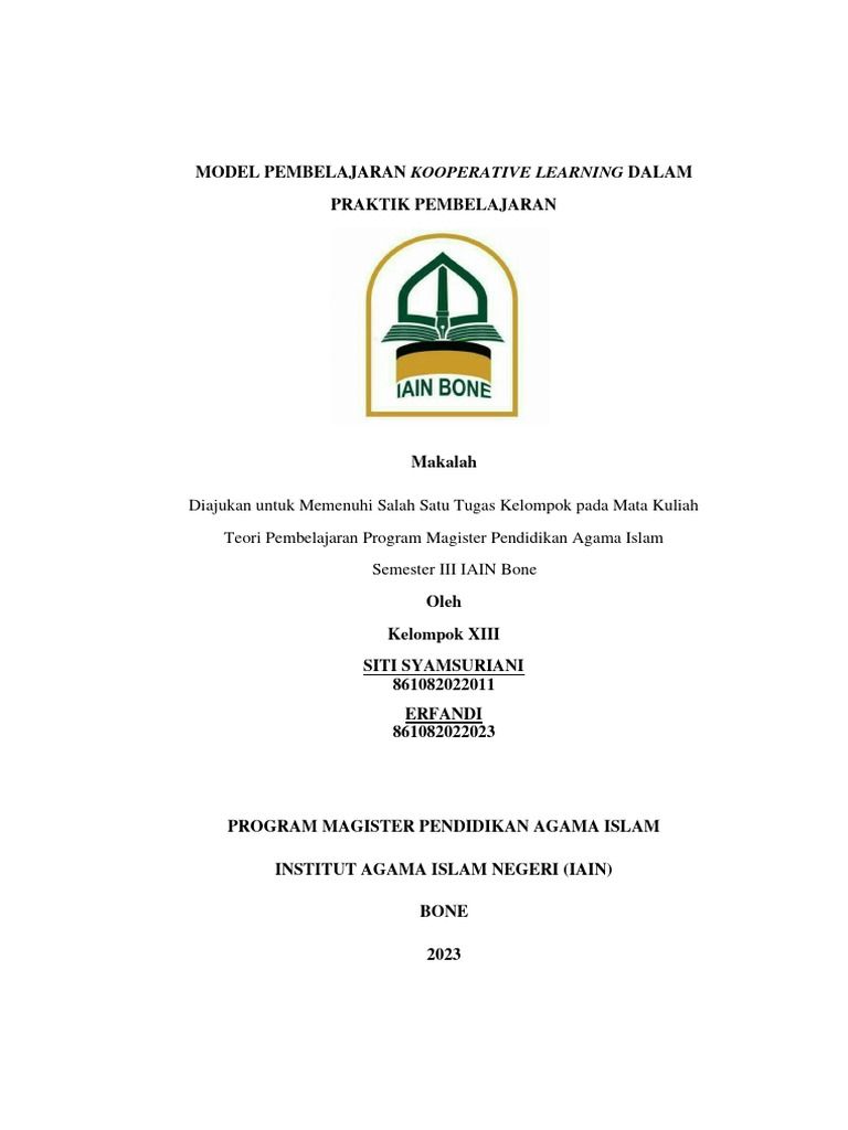 MODEL PEMBELAJARAN KOOPERATIVE LEARNING DALAM