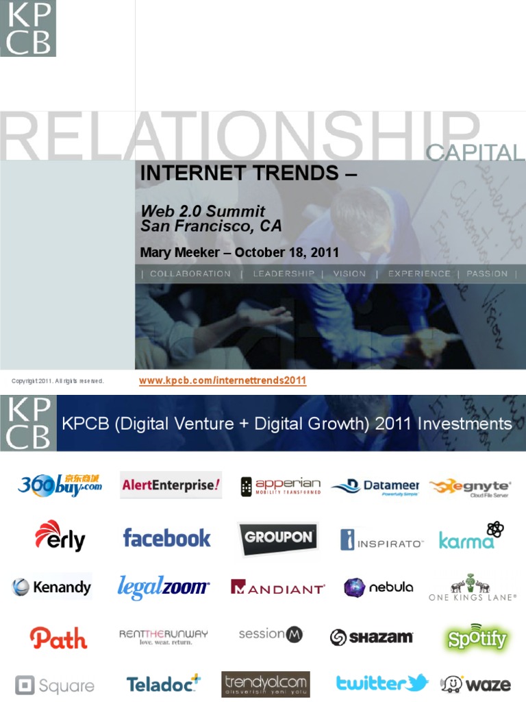 The information offered in this presentation speaks to industry trends in general, and should not be construed as providing any particular recommendations or analysis for any specific company that is mentioned in this presentation. KPCB is a venture capital firm that owns significant equity positions in certain of the companies referenced in this presentation.