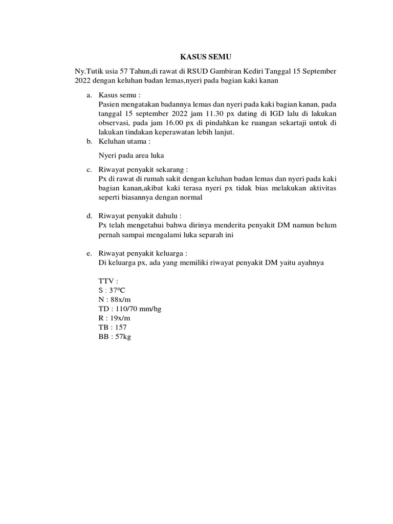 Px mengatakan kaki sebelah kanan masih terasa sakit