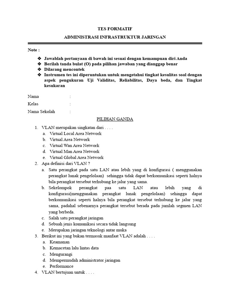 1. VLAN merupakan singkatan dari . . . .