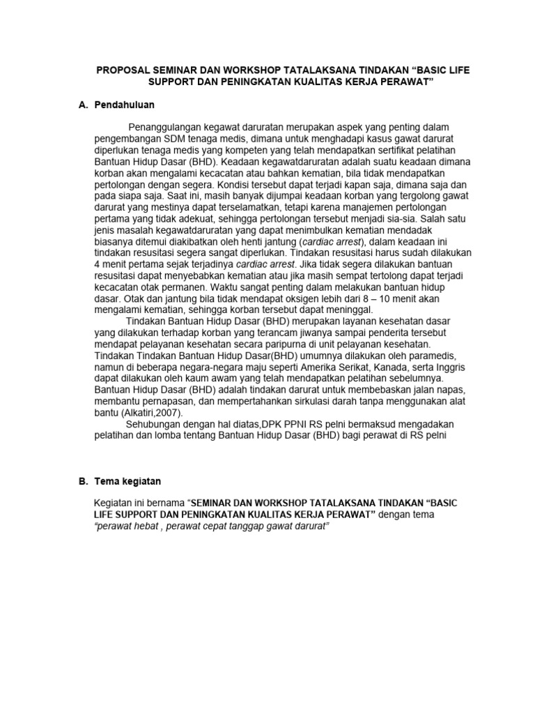 PROPOSAL SEMINAR DAN WORKSHOP TATALAKSANA TINDAKAN “BASIC LIFE