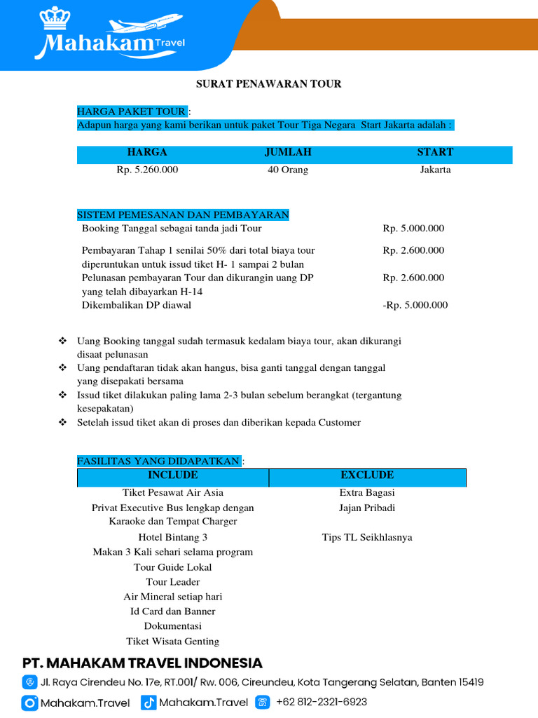 SURAT PENAWARAN TOUR