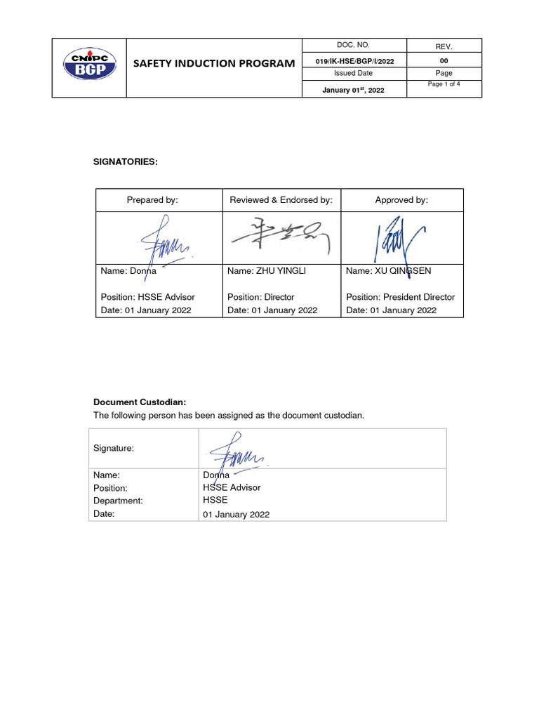 SAFETY INDUCTION PROGRAM 019/IK-HSE/BGP/I/2022 00
