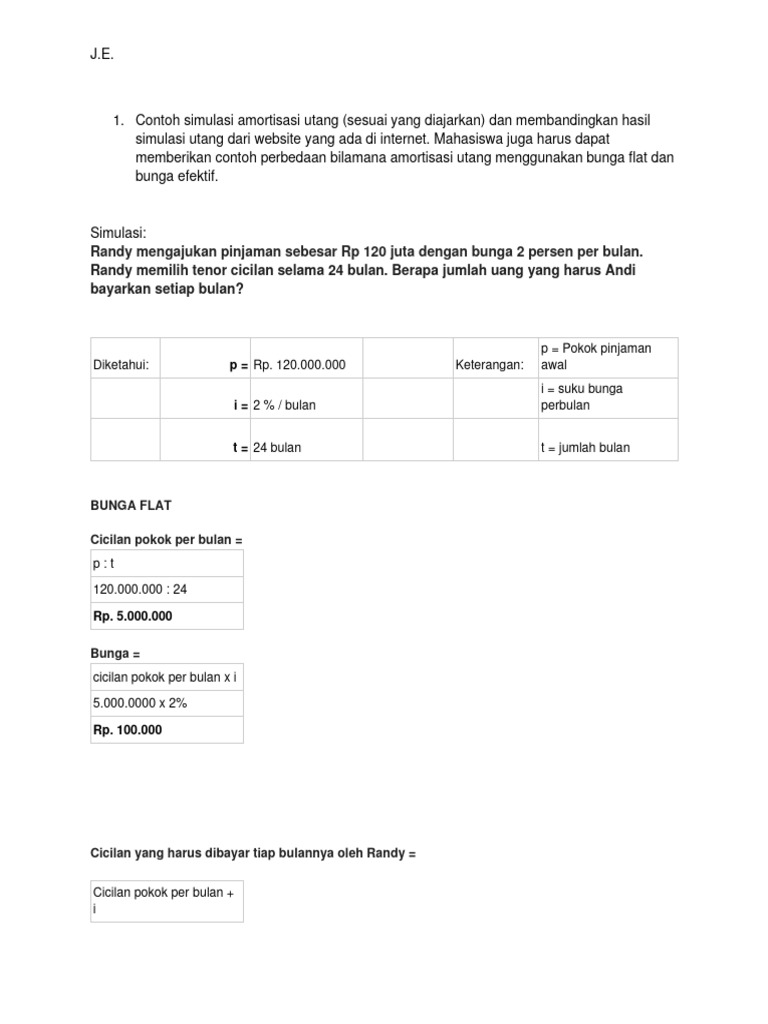 memberikan contoh perbedaan bilamana amortisasi utang menggunakan bunga flat dan