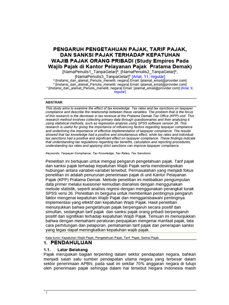 Kata kunci: Kepatuhan Wajib Pajak, Pengetahuan Pajak, Tarif Pajak, Sanksi Pajak