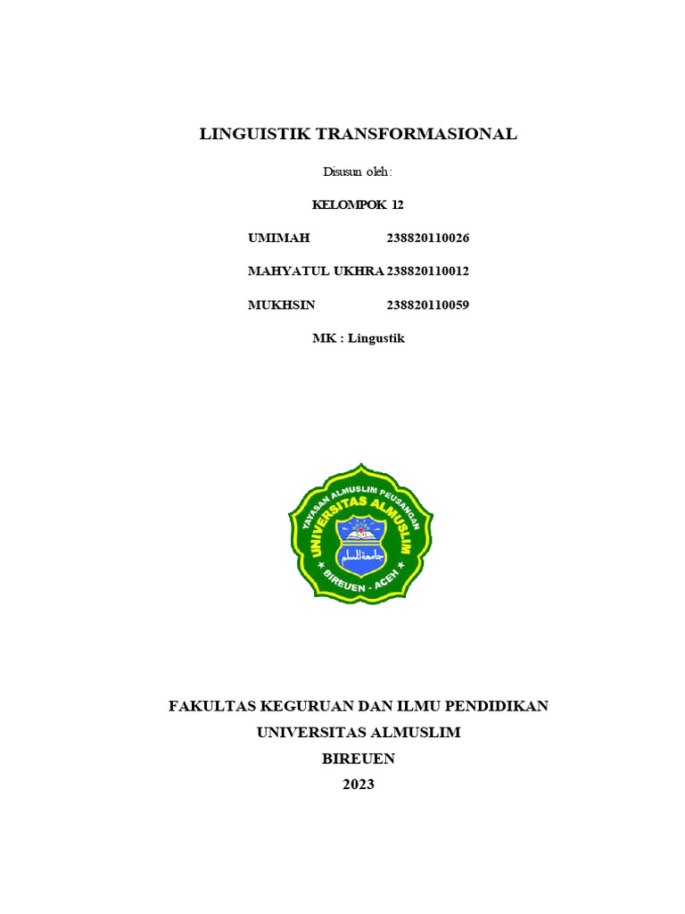 Linguistik transformasional adalah aliran linguistik yang dikembangkan oleh