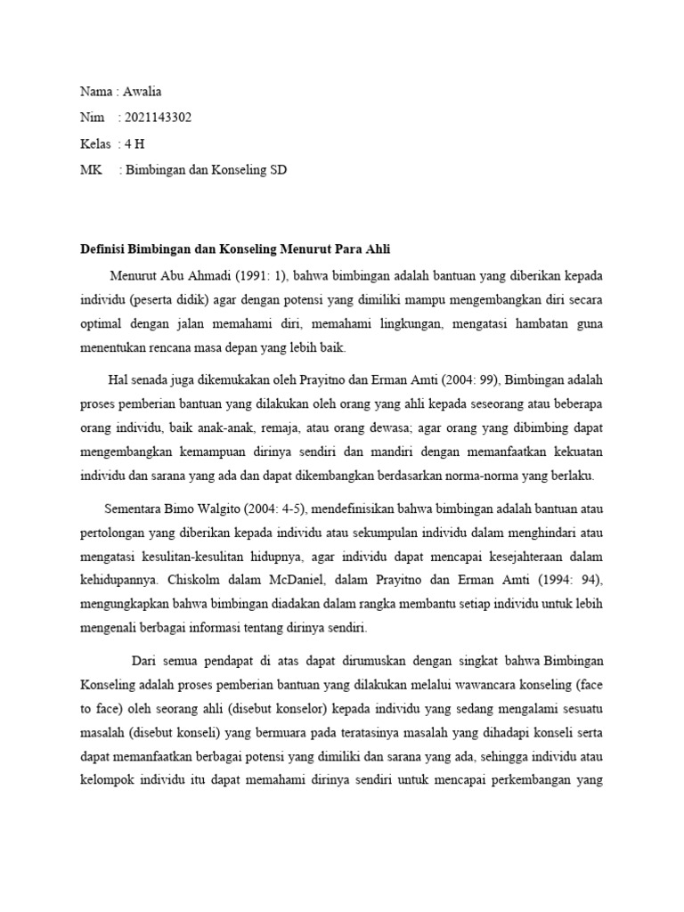 Definisi Bimbingan dan Konseling Menurut Para Ahli