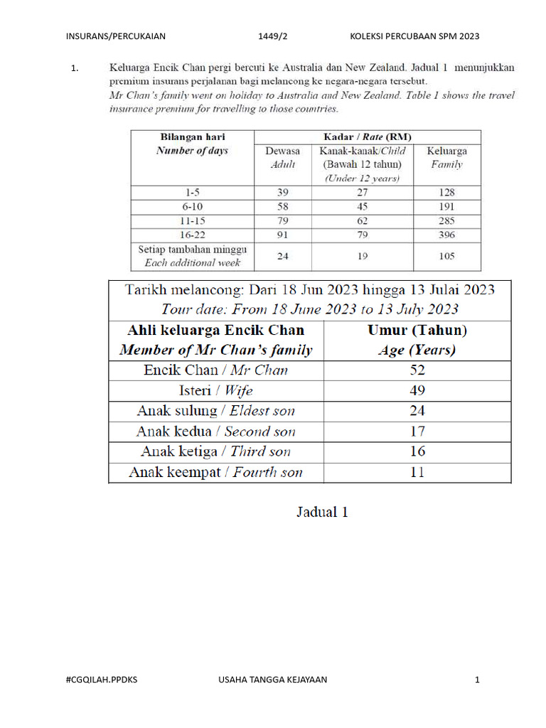 INSURANS/PERCUKAIAN 1449/2 KOLEKSI PERCUBAAN SPM 2023