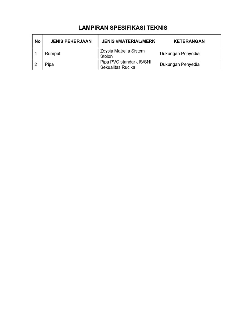 LAMPIRAN SPESIFIKASI TEKNIS Jaten Jelobo