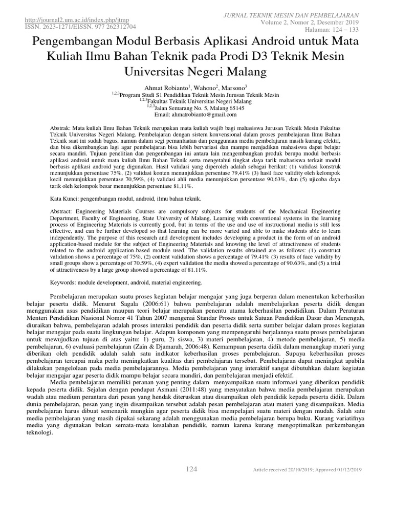 Kata Kunci: pengembangan modul, android, ilmu bahan teknik.