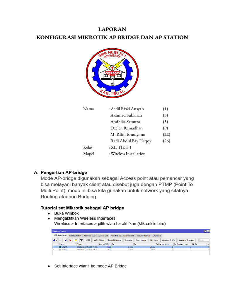KONFIGURASI MIKROTIK AP BRIDGE DAN AP STATION