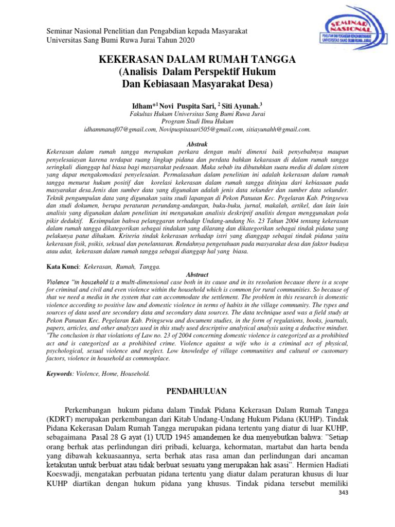 pikir deduktif.” Kesimpulan bahwa pelanggaran terhadap Undang-undang No. 23 Tahun 2004 tentang kekerasan