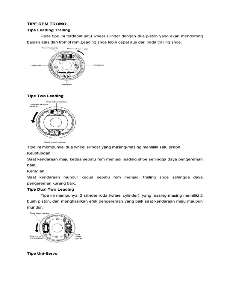 bagian atas dari tromol rem.Leading shoe lebih cepat aus dari pada trailing shoe.