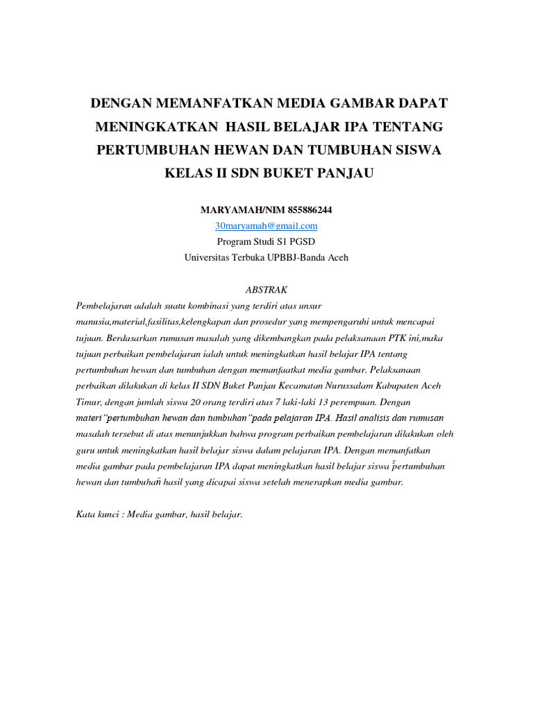 memanfaatkan media gambar dapat meningkatkan hasil belajar IPA tentang Pertumbuhan