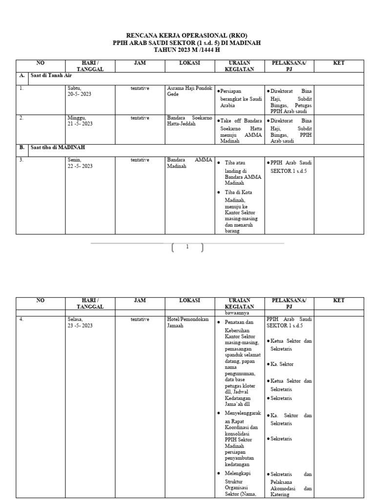 NO HARI / JAM LOKASI URAIAN PELAKSANA/ KET