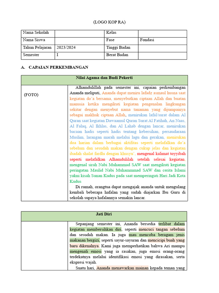 Alhamdulillah pada semester ini, capaian perkembangan