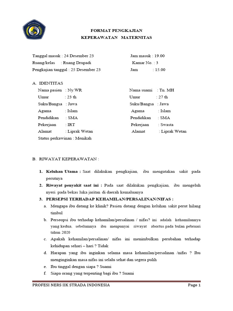 Nama pasien : Ny.WR Nama suami : Tn. MH