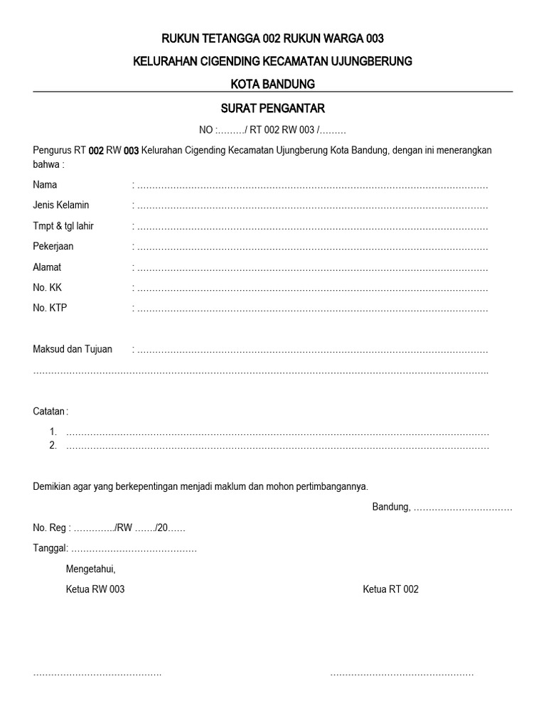 Pengurus RT 002 RW 003 Kelurahan Cigending Kecamatan Ujungberung Kota Bandung, dengan ini menerangkan