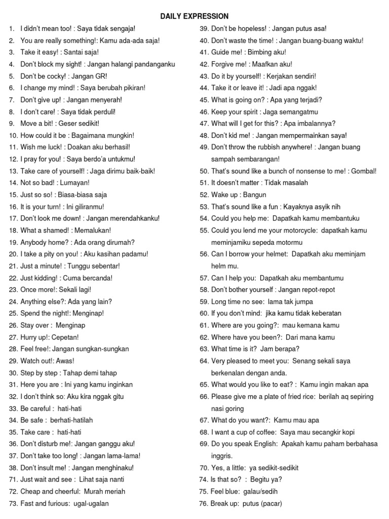 2. You are really something!: Kamu ada-ada saja! 40. Don’t waste the time! : Jangan buang-buang waktu!