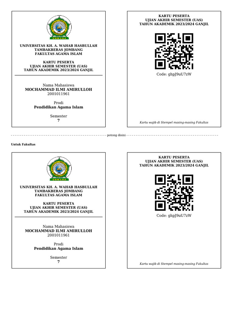 7 Kartu wajib di Stempel masing-masing Fakultas