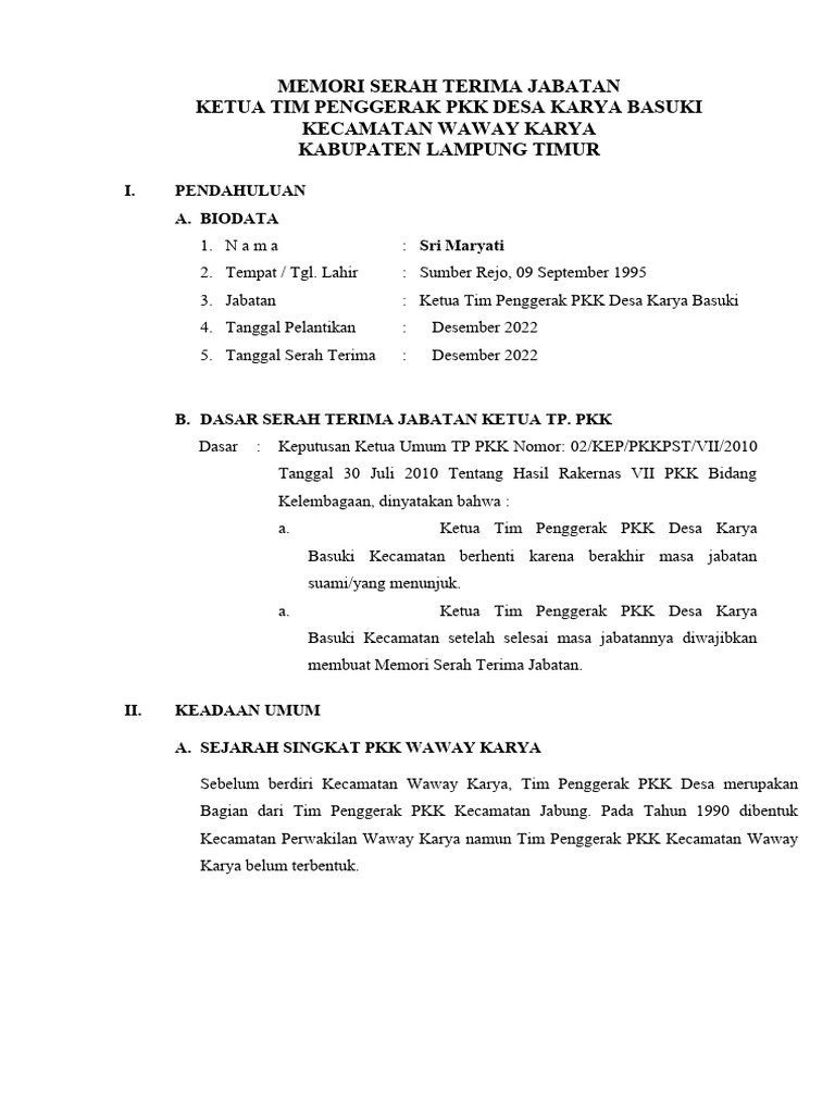 Demikian Memori Serah Terima Jabatan ini dibuat sebagai gambaran tentang situasi dan