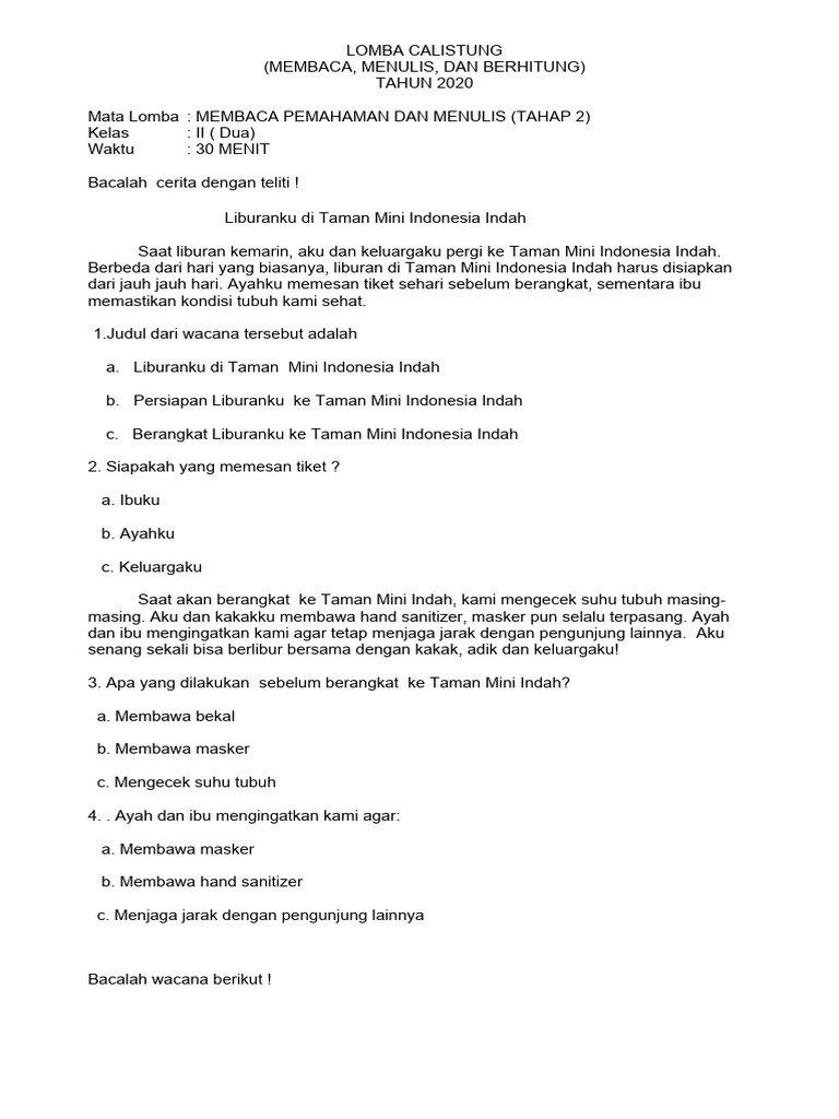 Mata Lomba : MEMBACA PEMAHAMAN DAN MENULIS (TAHAP 2)