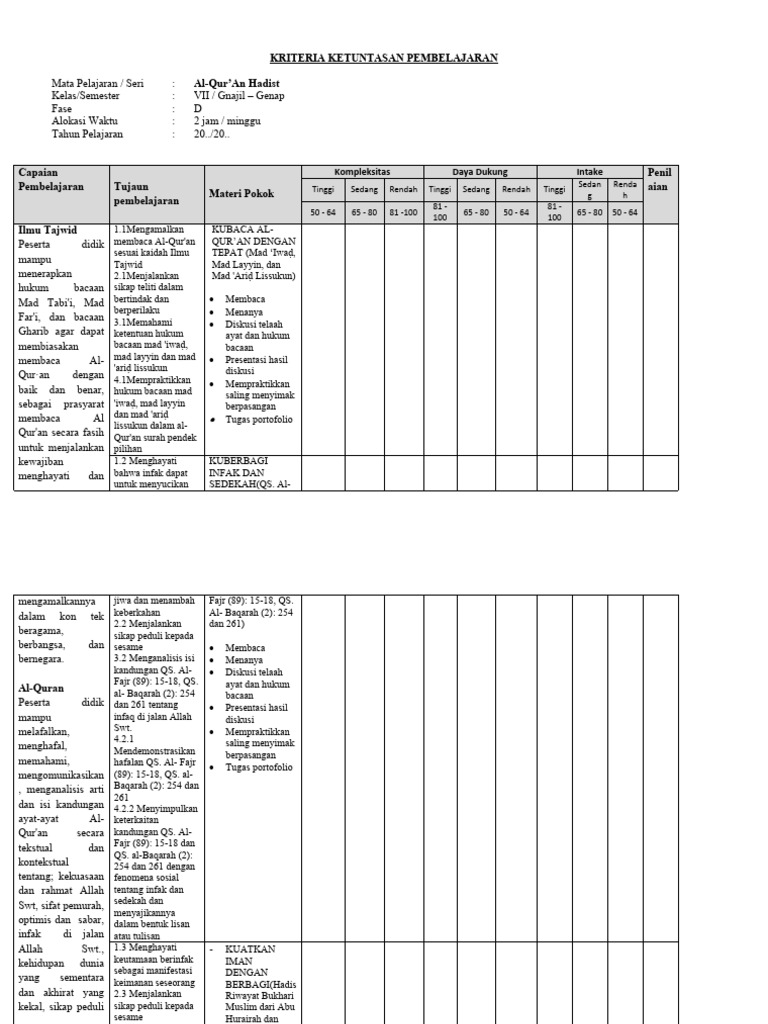 KRITERIA KETUNTASAN PEMBELAJARAN