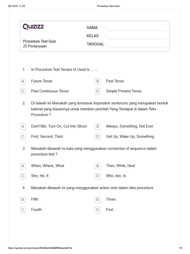 02 Procedure Text Quiz