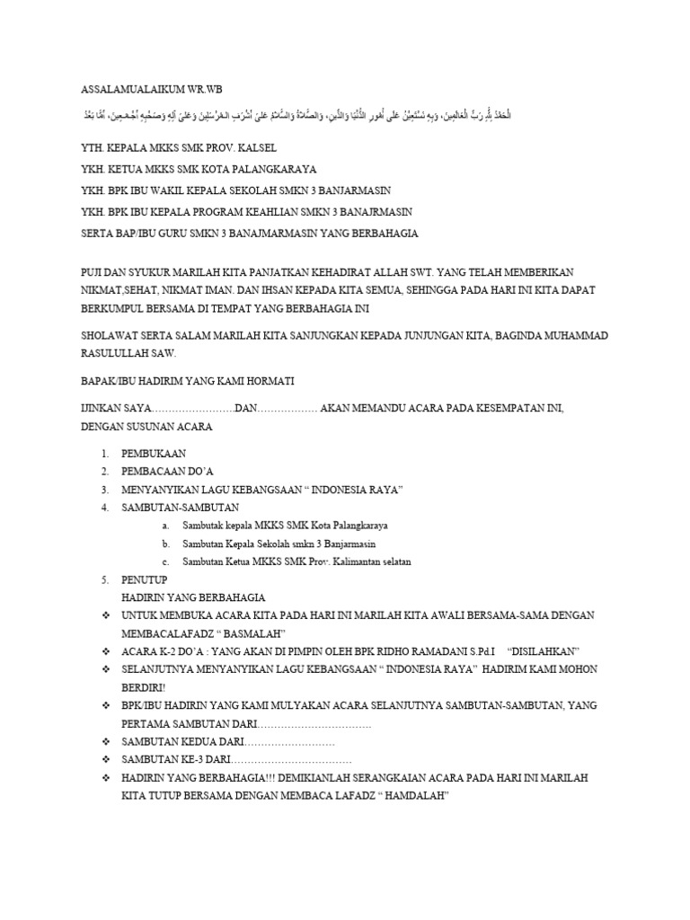 UNTUK MEMBUKA ACARA KITA PADA HARI INI MARILAH KITA AWALI BERSAMA-SAMA DENGAN