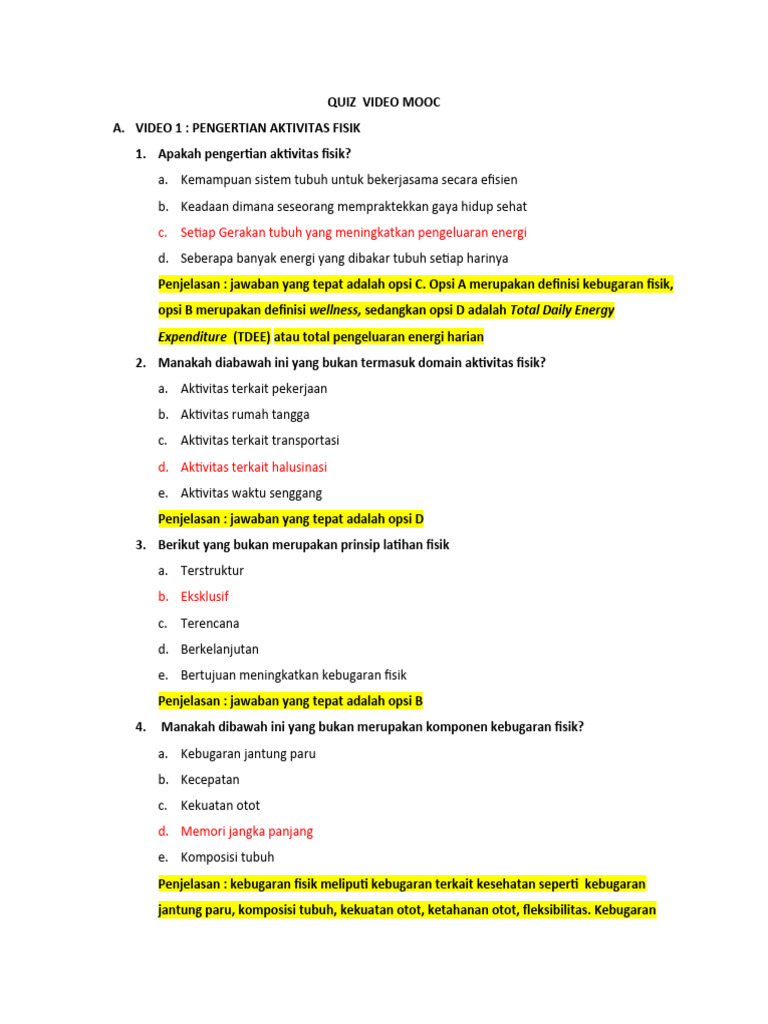 Penjelasan : jawaban yang tepat adalah opsi C. Opsi A merupakan definisi kebugaran fisik,