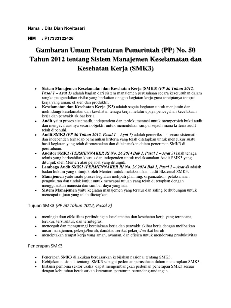 Sistem Manajemen Keselamatan dan Kesehatan Kerja (SMK3) (PP 50 Tahun 2012,