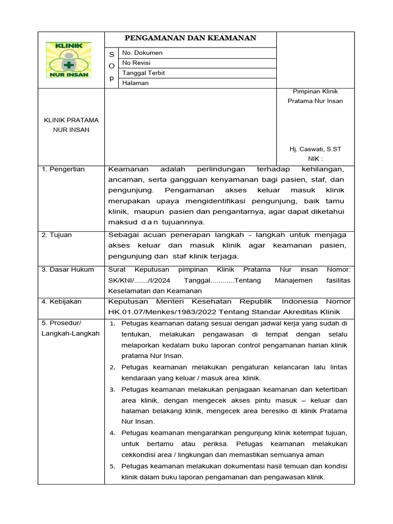 5. Prosedur/ 1. Petugas keamanan datang sesuai dengan jadwal kerja yang sudah di