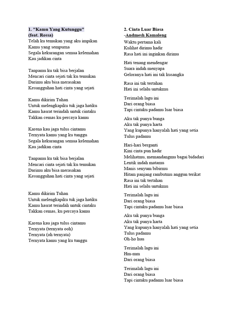 1. "Kamu Yang Kutunggu" 2.