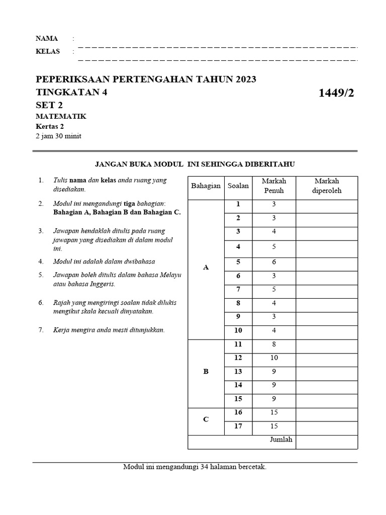 16 Cikgu Amir bercadang untuk membina sebuah pondok rehat di kebun buah-buahan miliknya.