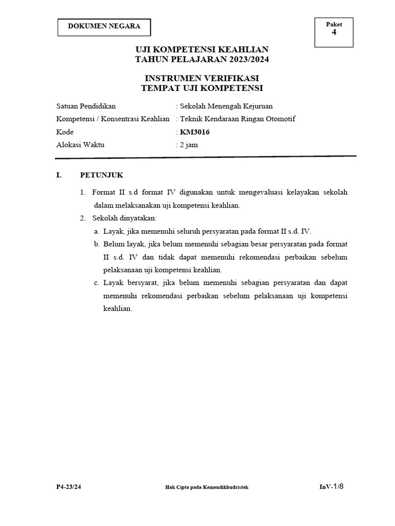 1. Format II s.d format IV digunakan untuk mengevaluasi kelayakan sekolah