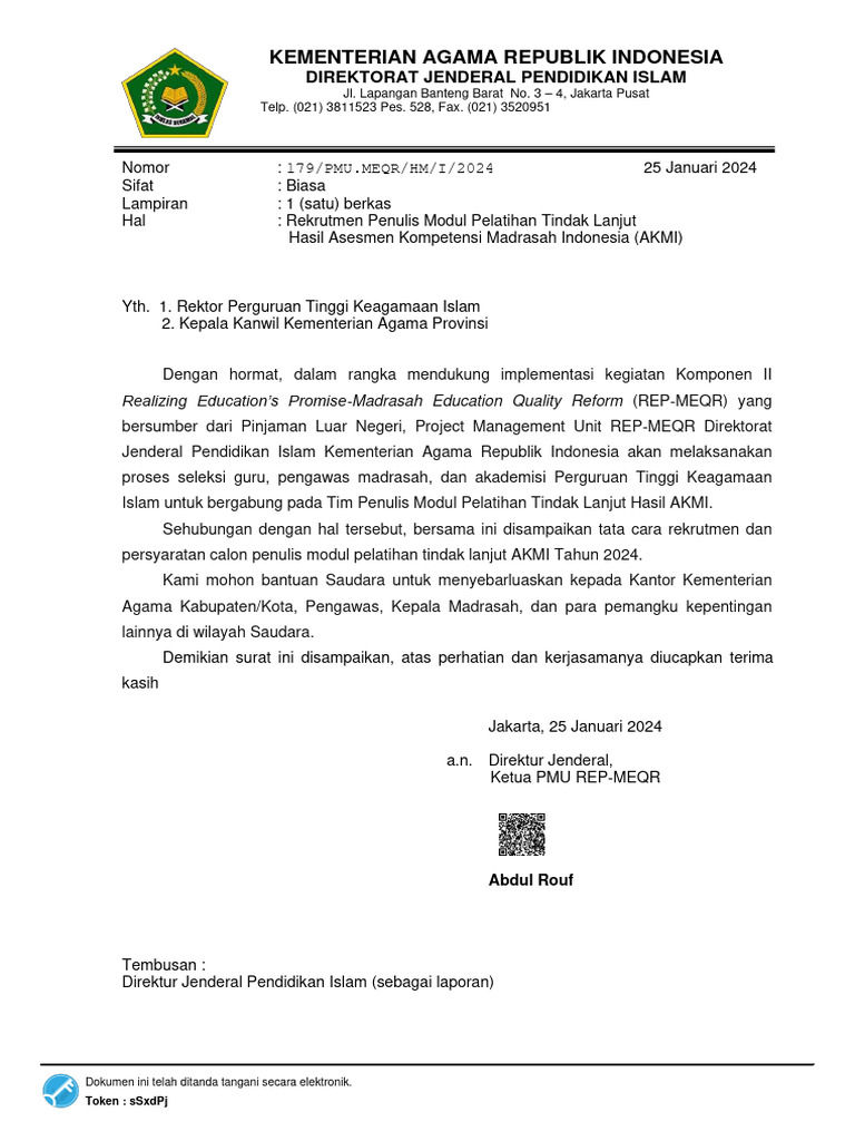 Nomor : 179/PMU.MEQR/HM/I/2024 25 Januari 2024