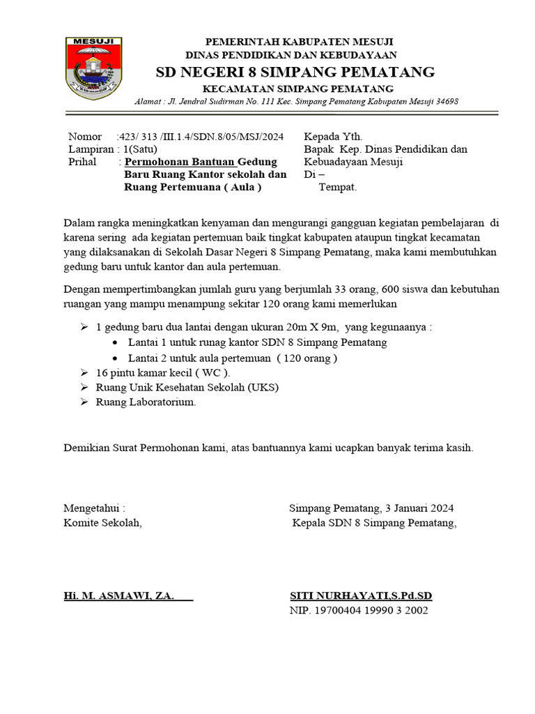 yang dilaksanakan di Sekolah Dasar Negeri 8 Simpang Pematang, maka kami membutuhkan
